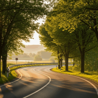 プロンプト:フランスの田舎町、情緒的な風景、夕日の景色