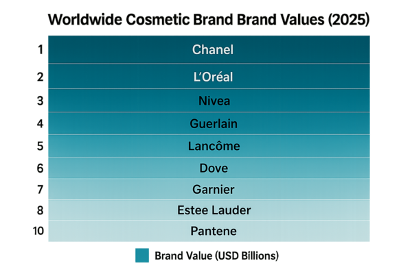 1. 世界コスメブランド価値ランキング(ブランド価値ベース・2025年) 出典:Brand Finance「Cosmetics 50 2025」より、ブランド価値額上位10ブランドを抜粋・整理(brandfinance.com )
