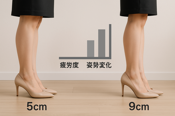 生成AIが語る5cmと9cmヒールの足の疲労度と姿勢変化比較データ