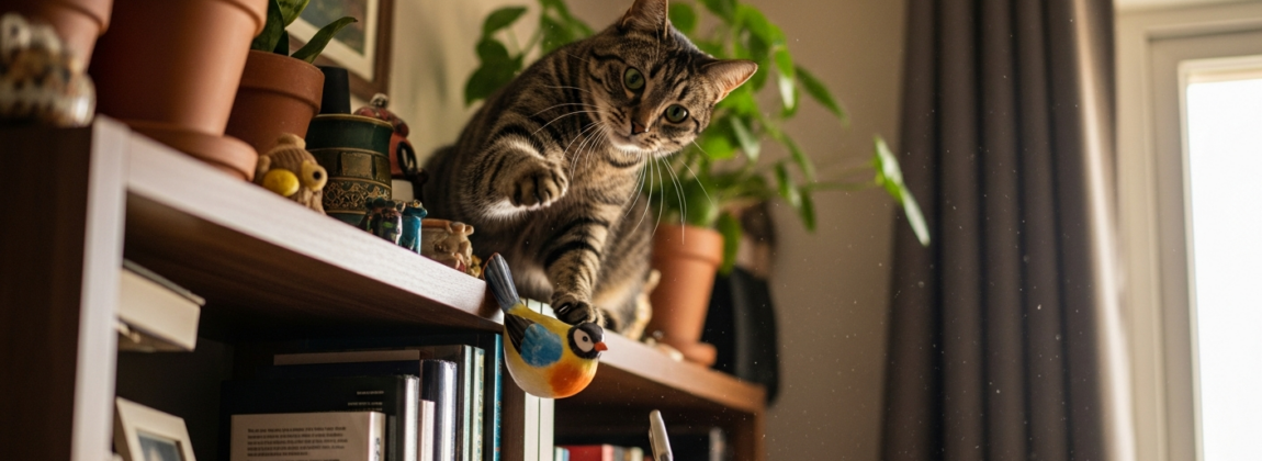 生成AIが語る猫が棚から物を落とす行動に隠された本当の理由